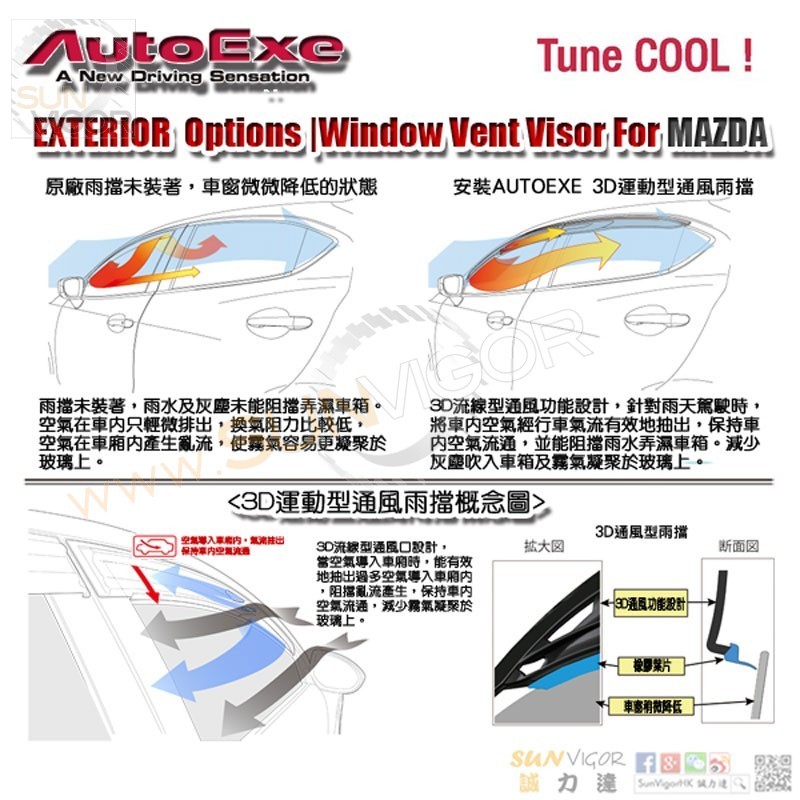 AutoExe 3D运动型通风睛雨挡|雨挡|雨眉适合2015+ 马自达...