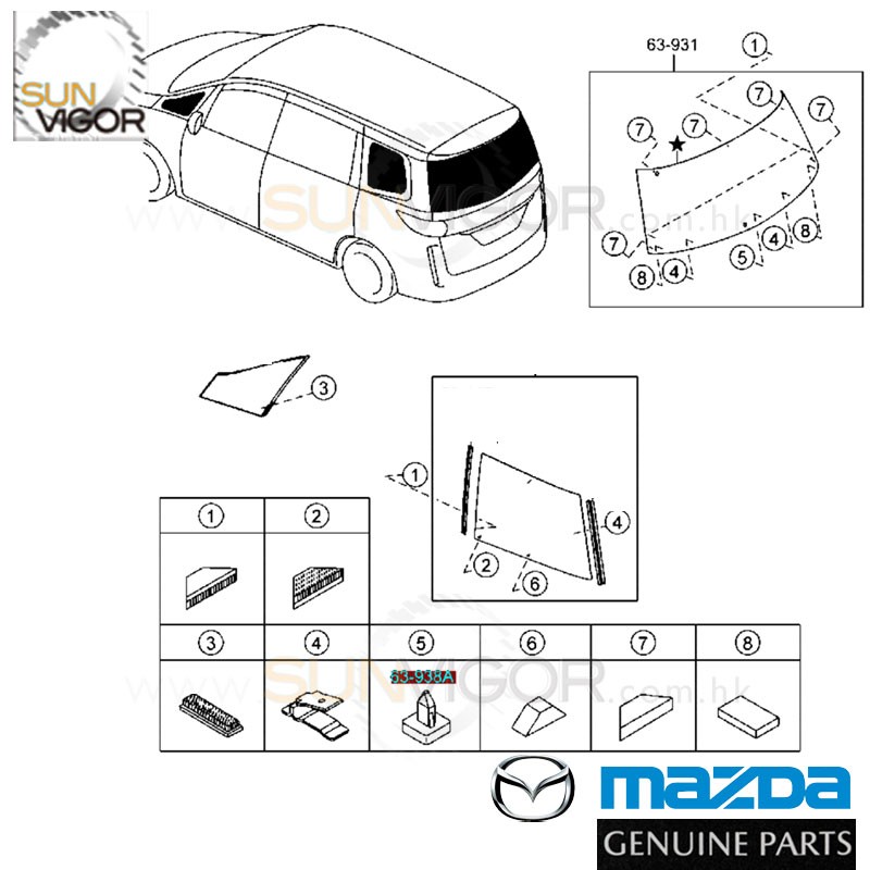 马自达正厂| MAZDA OEM 尾头挡风玻璃钉 WINDOW GLASS...