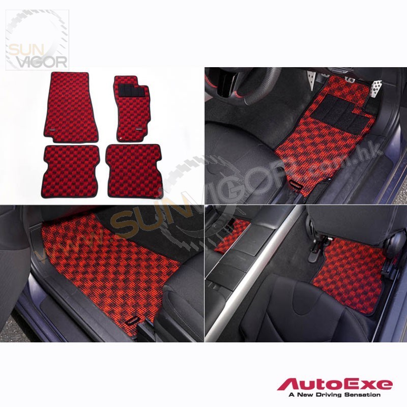 AutoExe 红黑格仔地毯|地垫套装适合2003-2012 马自达...