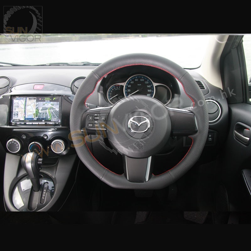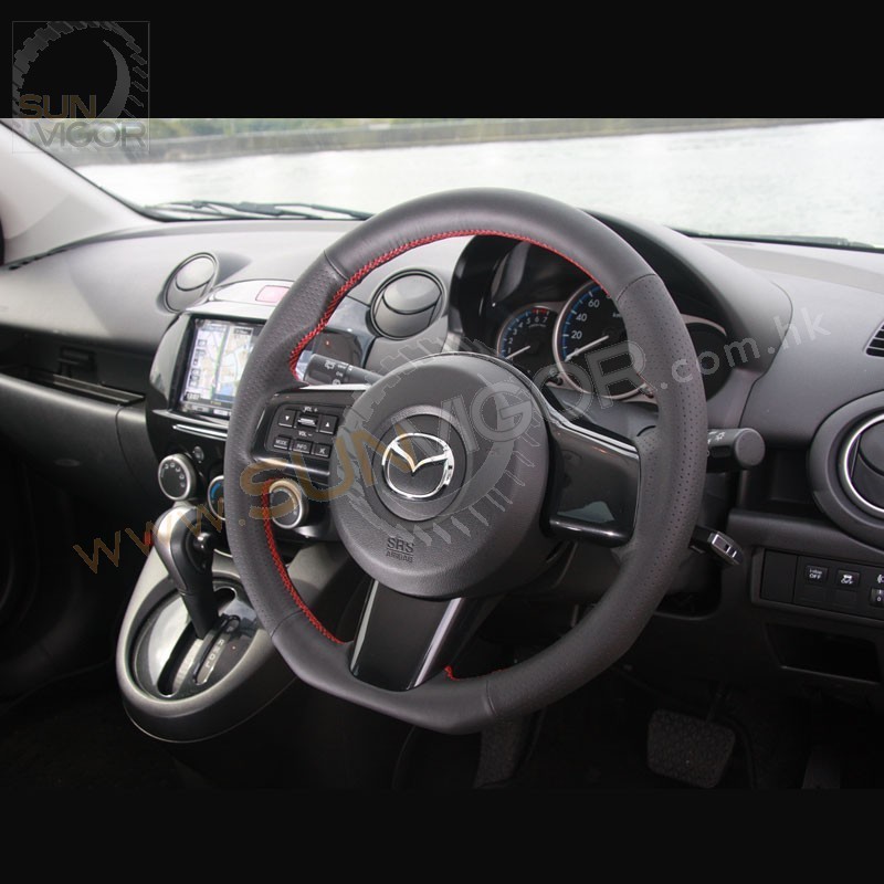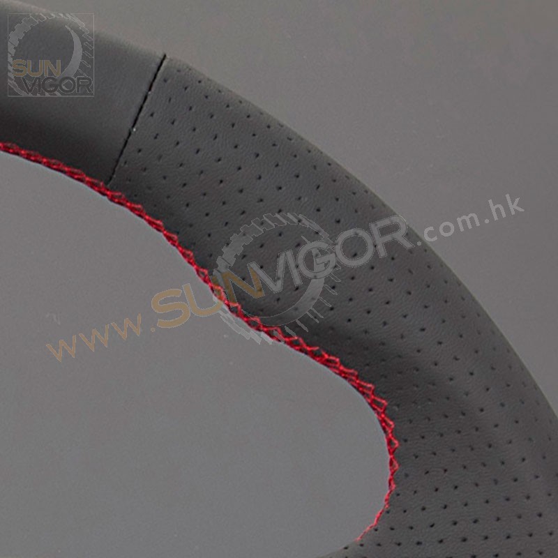 AutoExe D型平底真皮方向盘|軚环带红色缝线适合2007-2014...