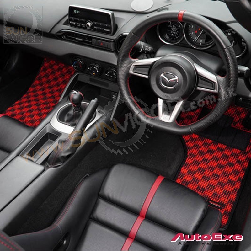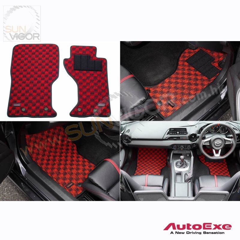 AutoExe 红黑格仔地毯|地垫套装适合2017+ 马自达MX-5...