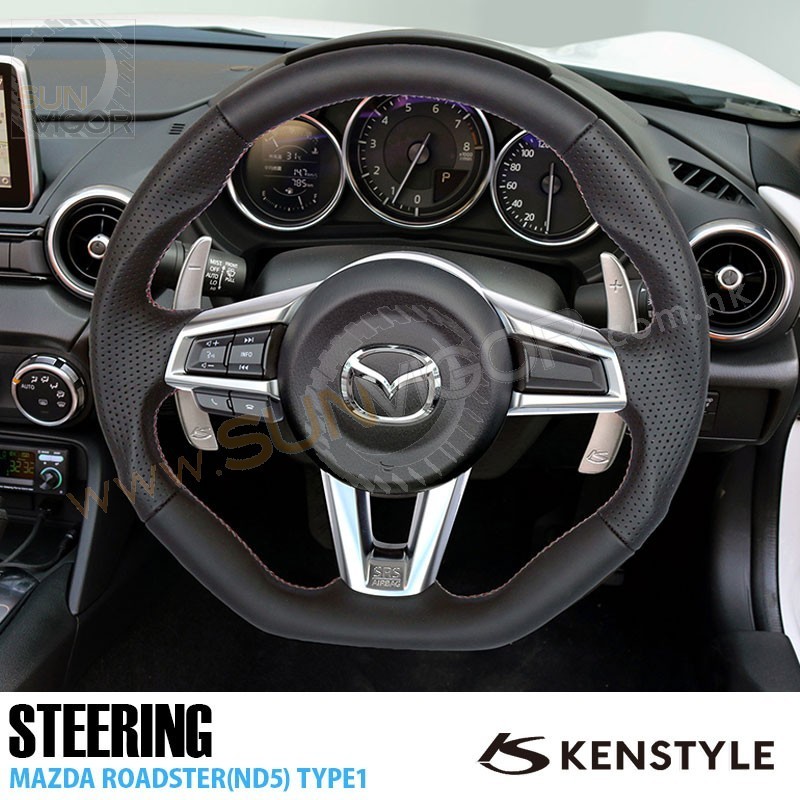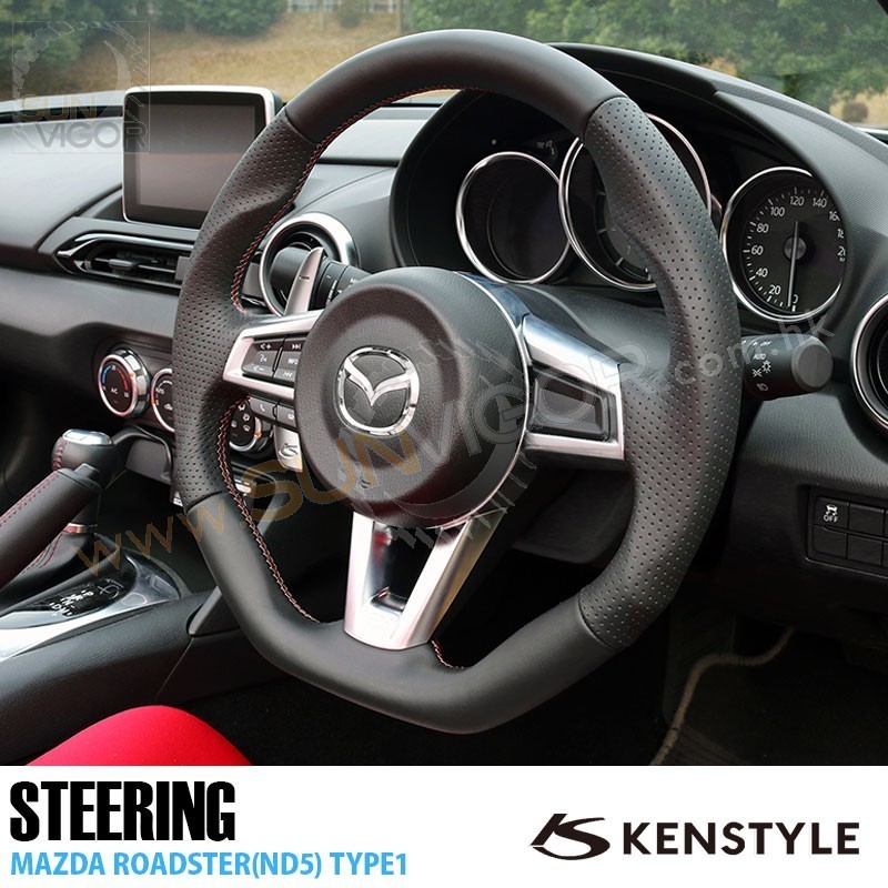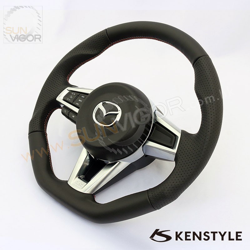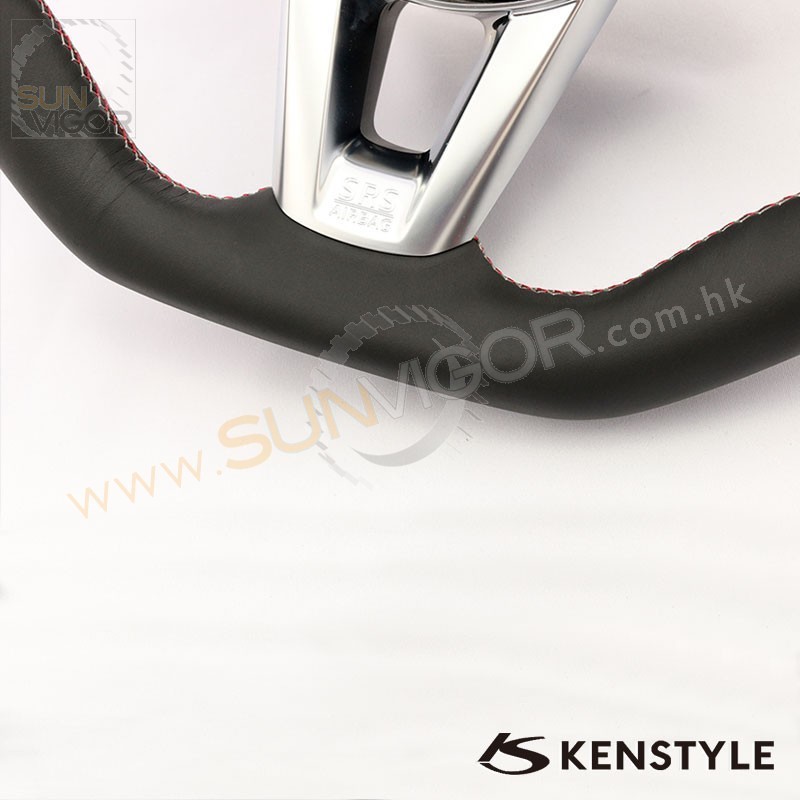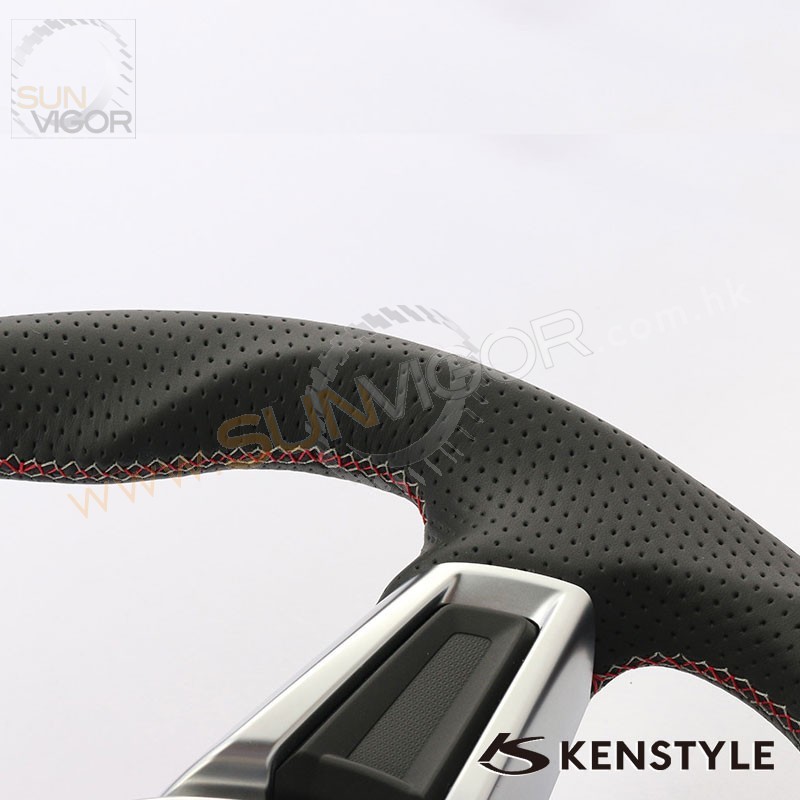 Kenstyle D型平底真皮方向盘|軚环带红灰双缝线适合2016+...
